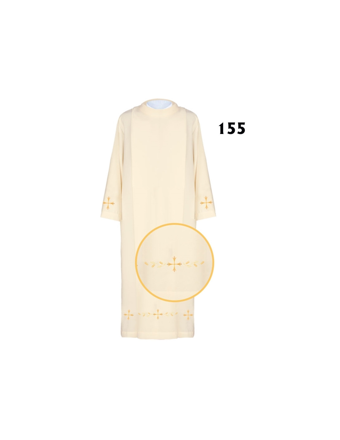 Alba Lisa Cruda Cuello Redondo Con Cenefa Dorada Cruces Y Espigas En Mangas Y Bajo T-55