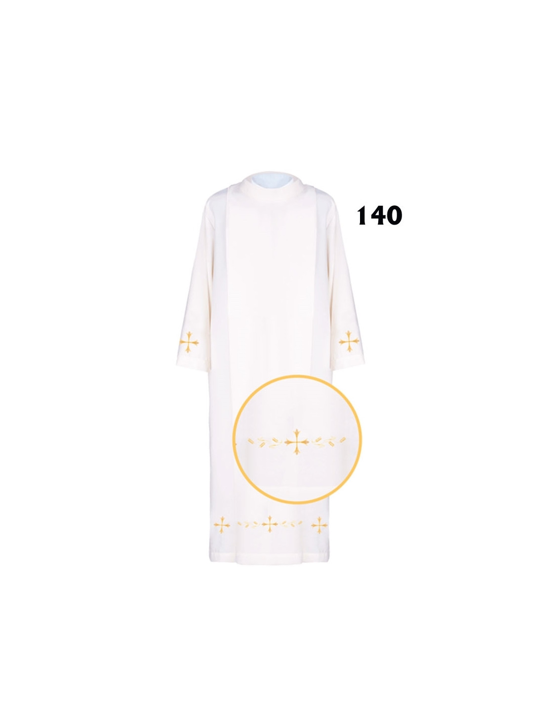Alba Lisa Blanca Cuello Redondo Con Cenefa Dorada Cruces Y Espigas En Mangas Y Bajo T-40