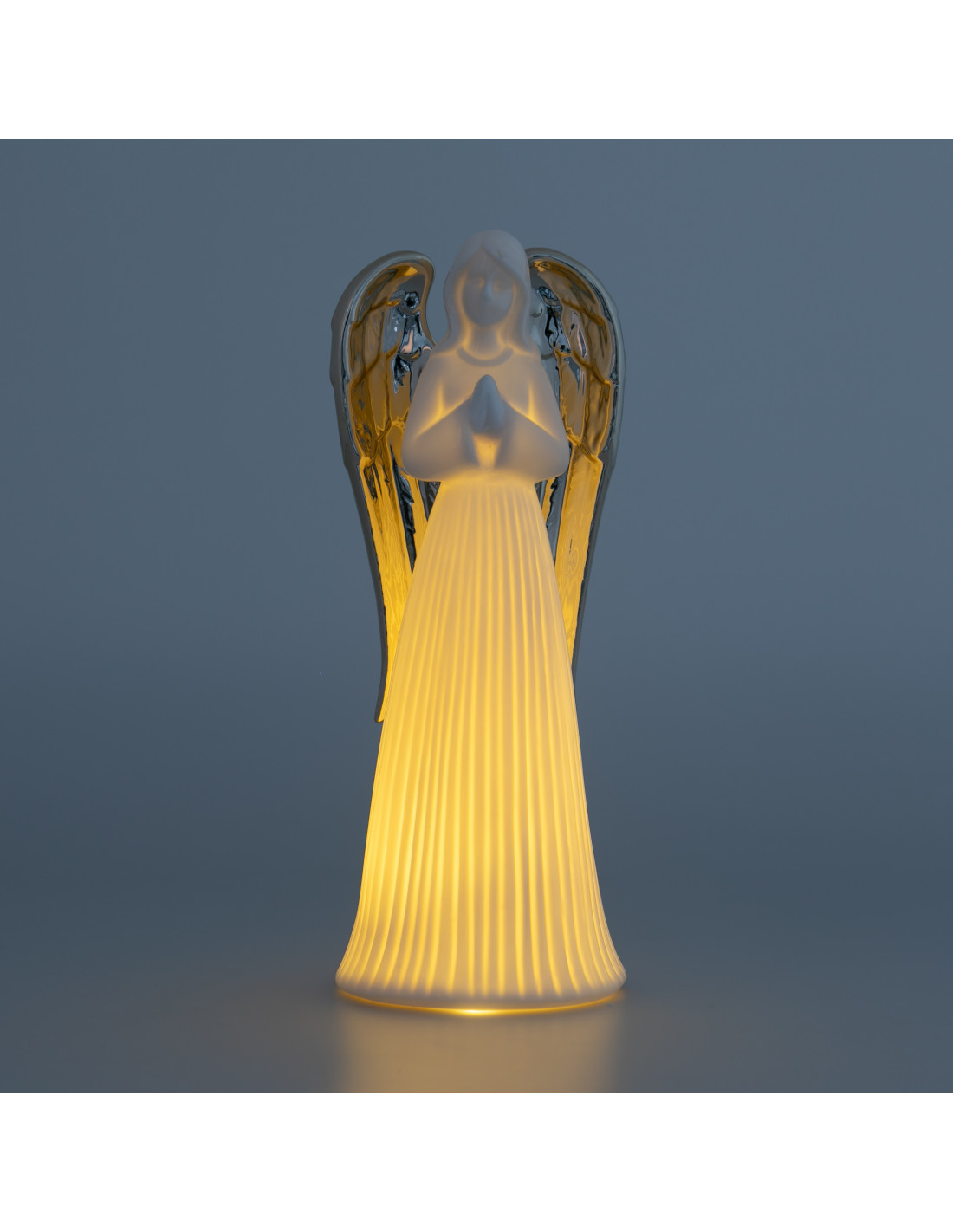 Angel Porcelana Blanca Vestido Rayado 24X15cm Alas Doradas