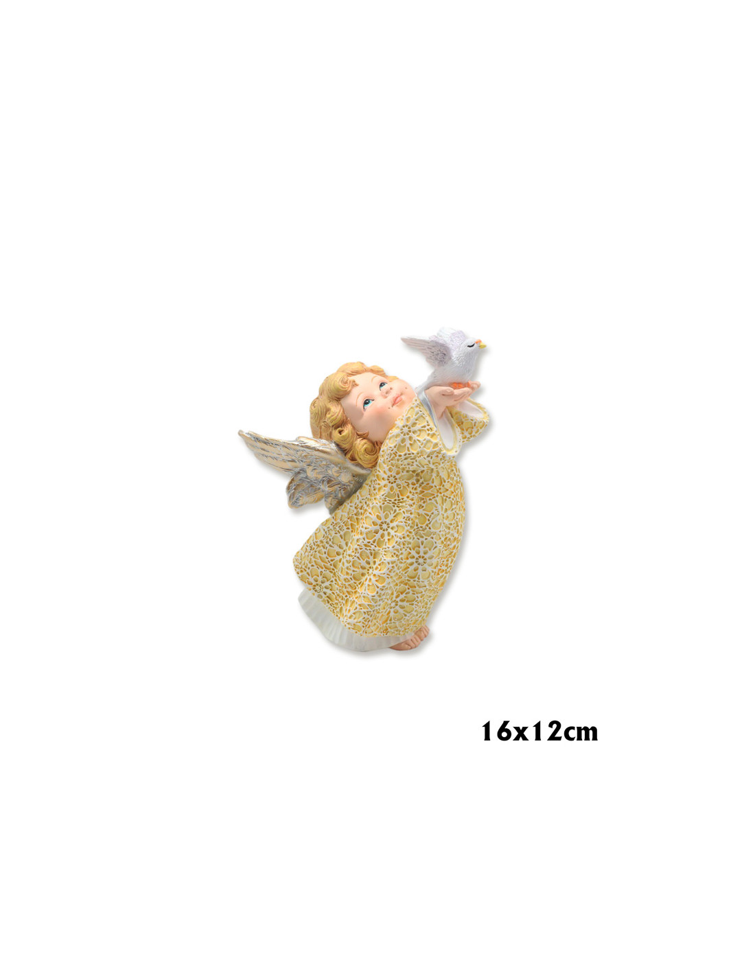 Angel Res Con Paloma En Las Manos 16Cm Pl Vestido Dorado Bajo En Blanco Alas Doradas