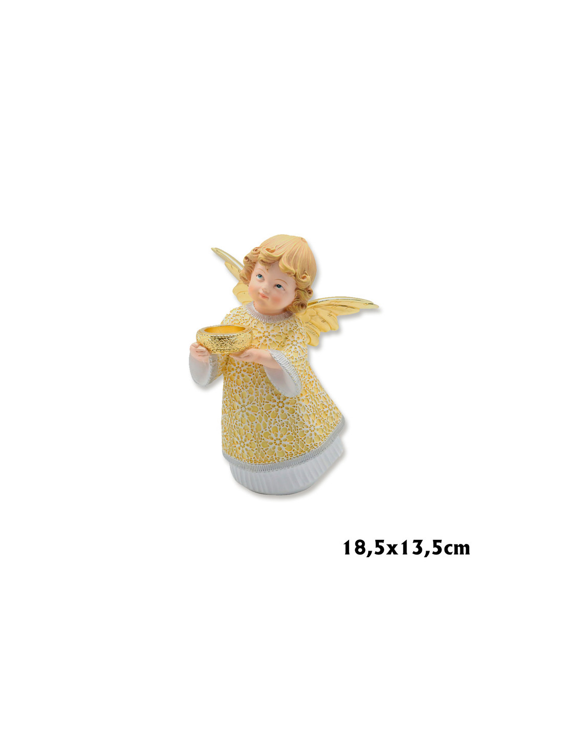 Angel Res Con Cuenco En Las Manos 18. 5Cm Pm Vestido Dorado Bajo En Blanco Alas Doradas