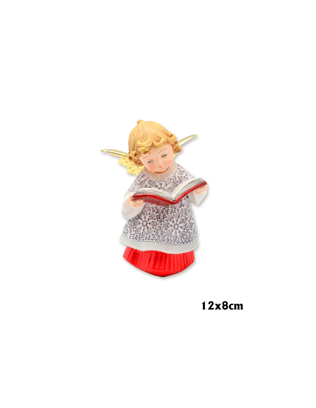 Angel Res Leyendo 12Cm Pq Vestido Blanco Bajo En Rojo Alas Doradas