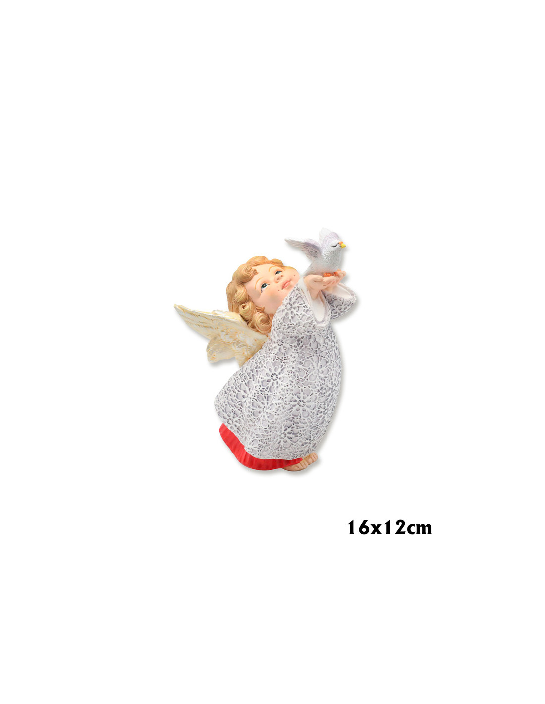 Angel Res Con Paloma En Las Manos 16Cm Pl Vestido Blanco Bajo En Rojo Alas Doradas