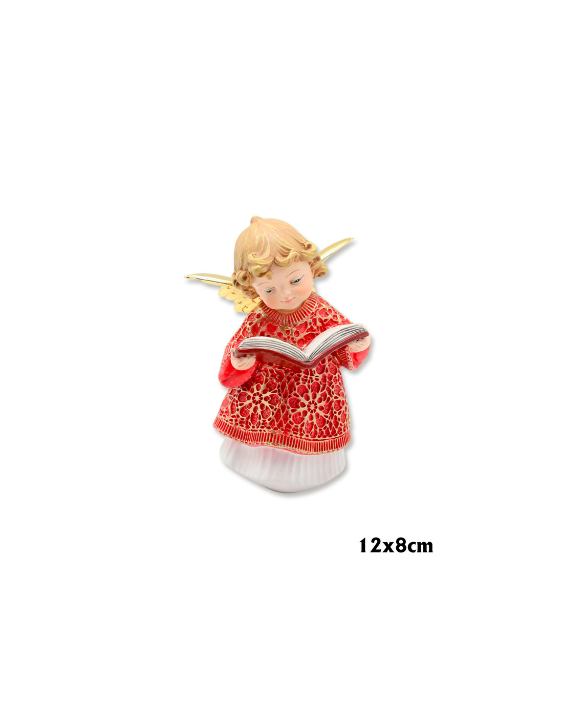 Angel Res Leyendo 12Cm Pq Vestido Rojo Bajo En Blanco Alas Doradas