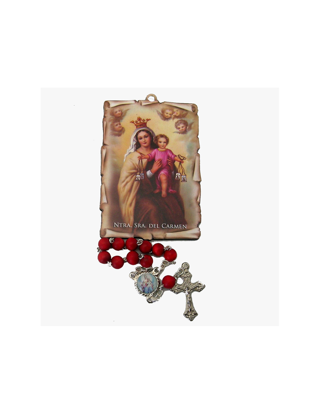 Tabla Pergamino Virgen Carmen Con Rosario Decena Perfumado