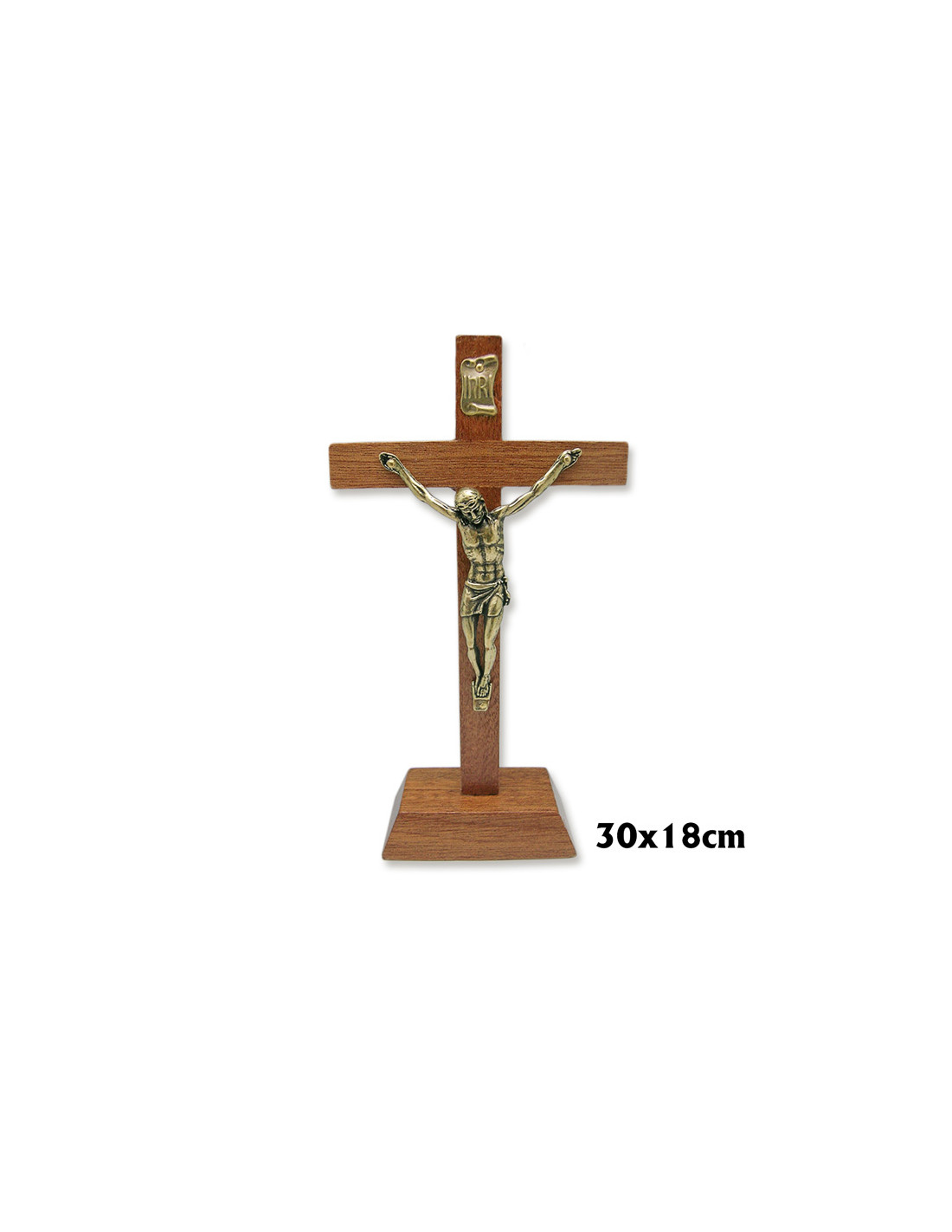 Crucifijo Madera Base 30x18cm Cristo Metal N108