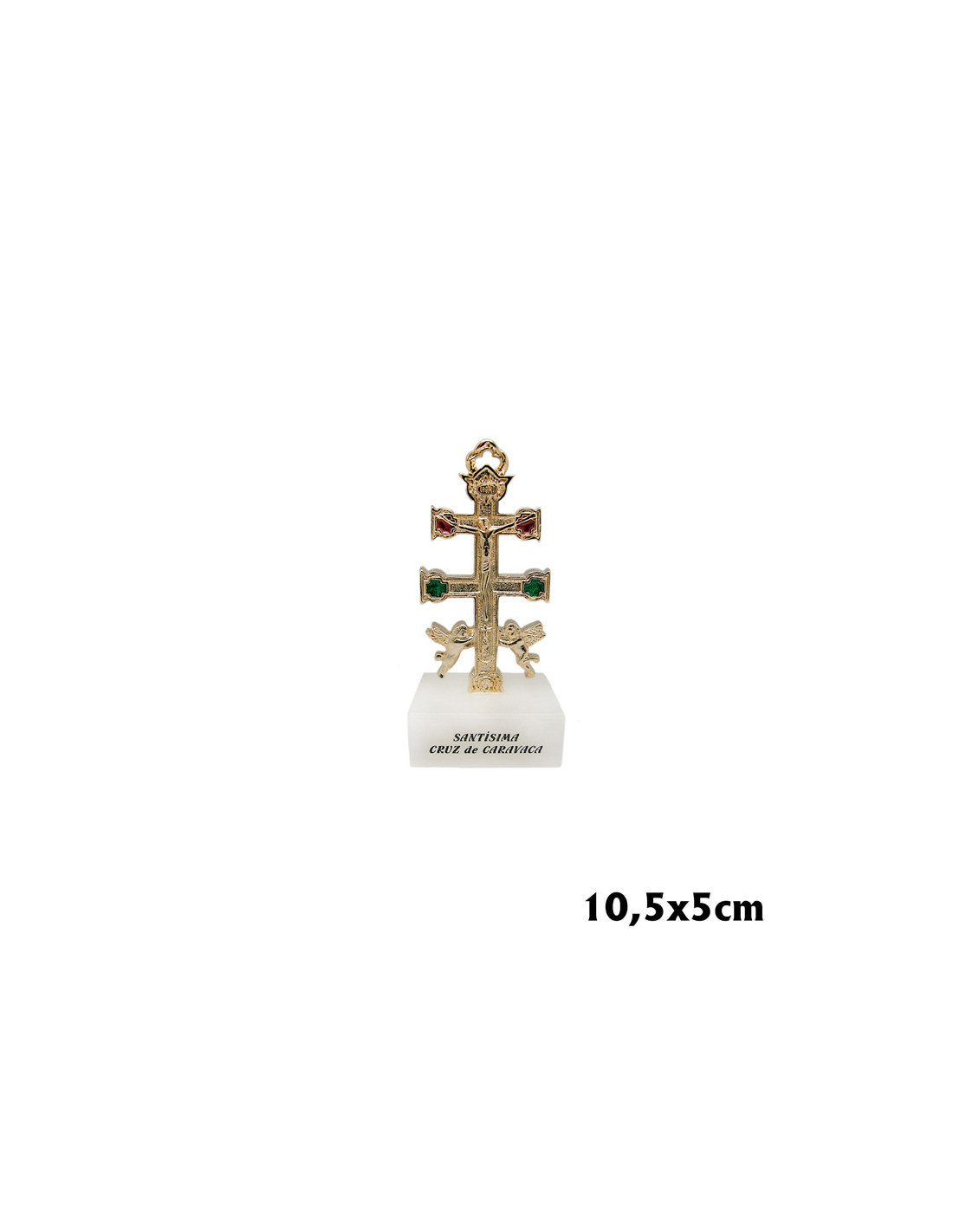 Cruz Caravaca Dorada Pequeña Base Rectangular 10. 5X5cm