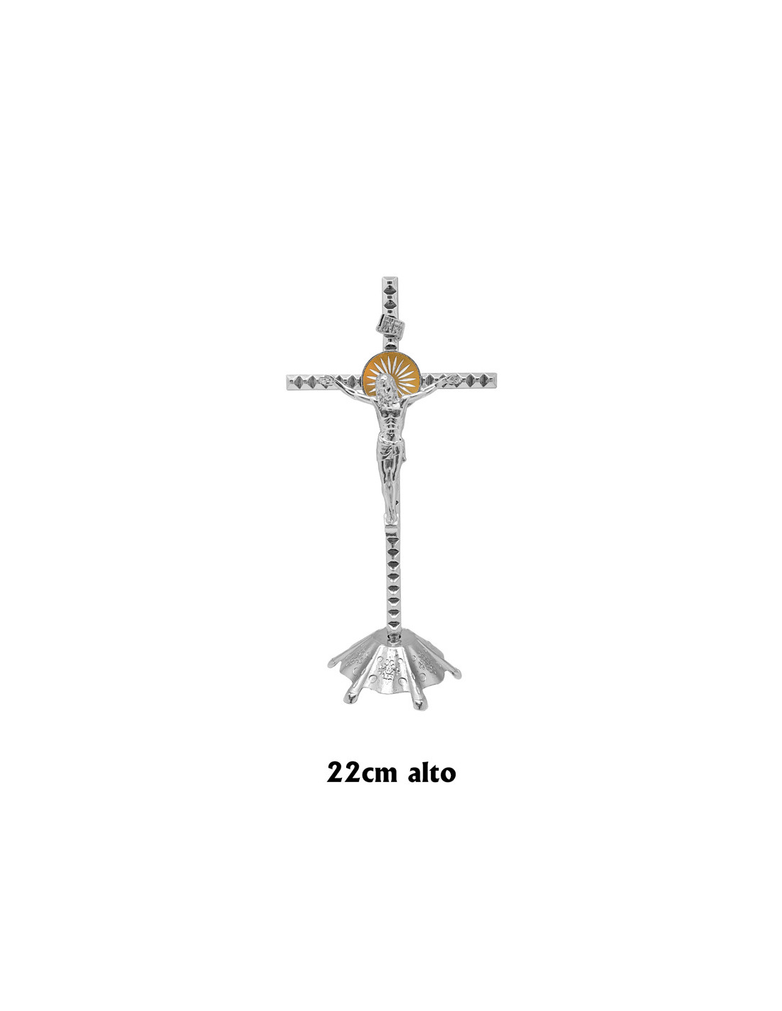 Cruz Metal Picos Niquel Base Con Aureola Dorada Con Rayos 23X11cm