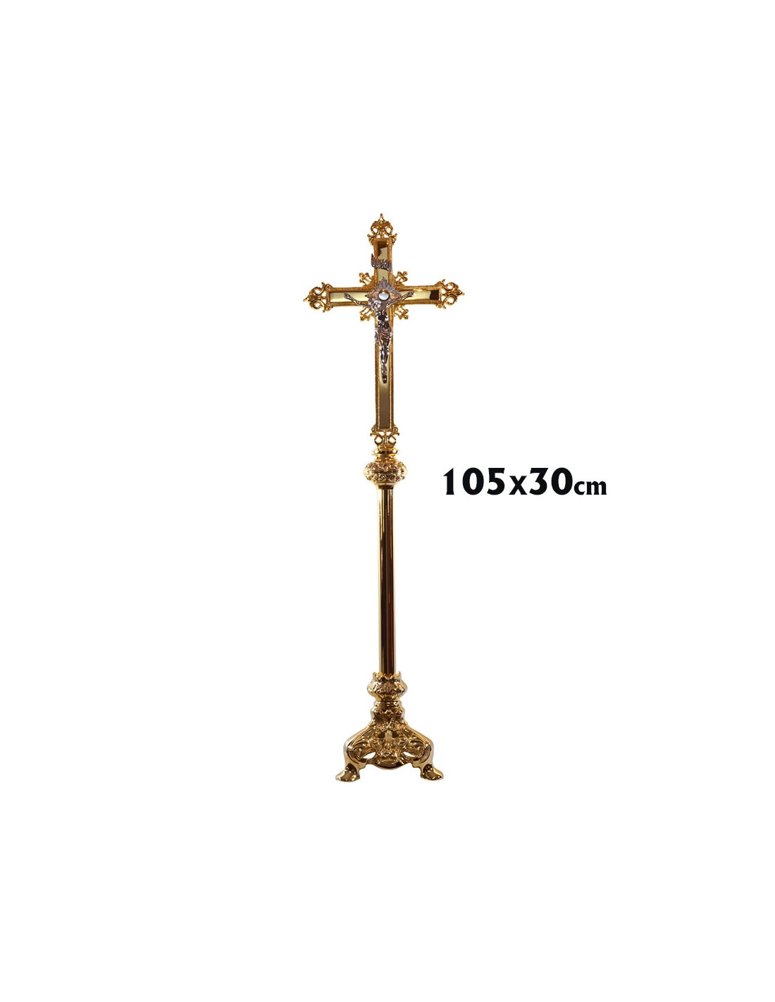 Cruz Altar 105Cm Base Triangular Doble Nudo Baño Oro 24K