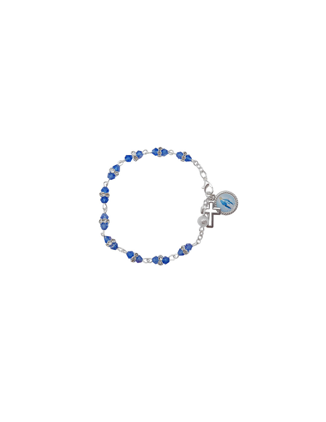 Pulsera Cristal Azul 4mm Doble Con Disco Y Pater Metalico Punteado