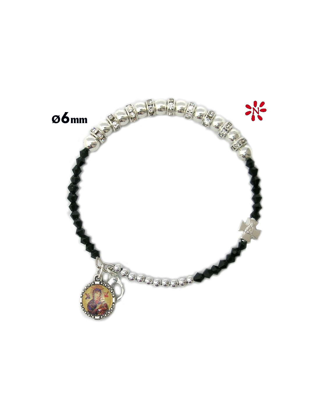 Brazalete Rigido 6mm Disco Zirconitas Con Bolas Plateadas Y Rombos Negros