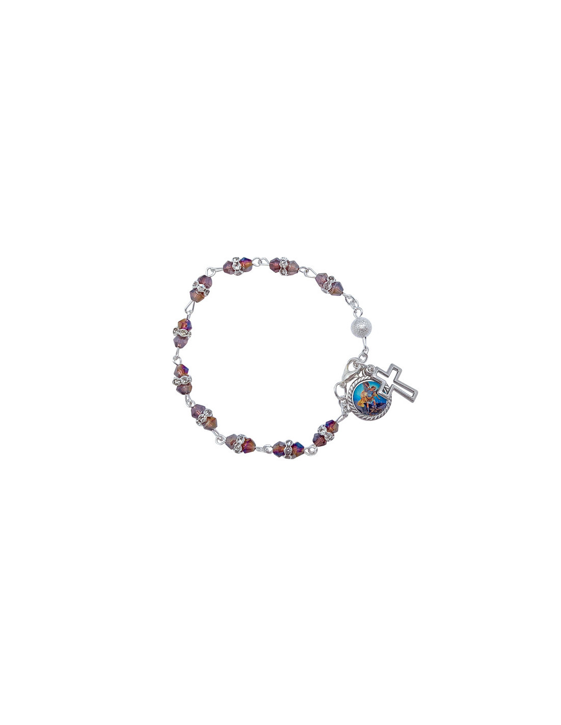 Pulsera Cristal Morado 4mm Doble Con Disco Y Pater Metalico Punteado