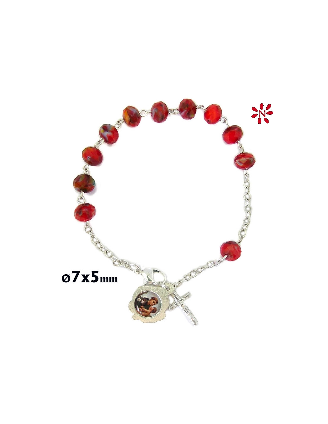 Rosario Brazalete Cristal Oval Rojo Tipo Murano 7X5mm