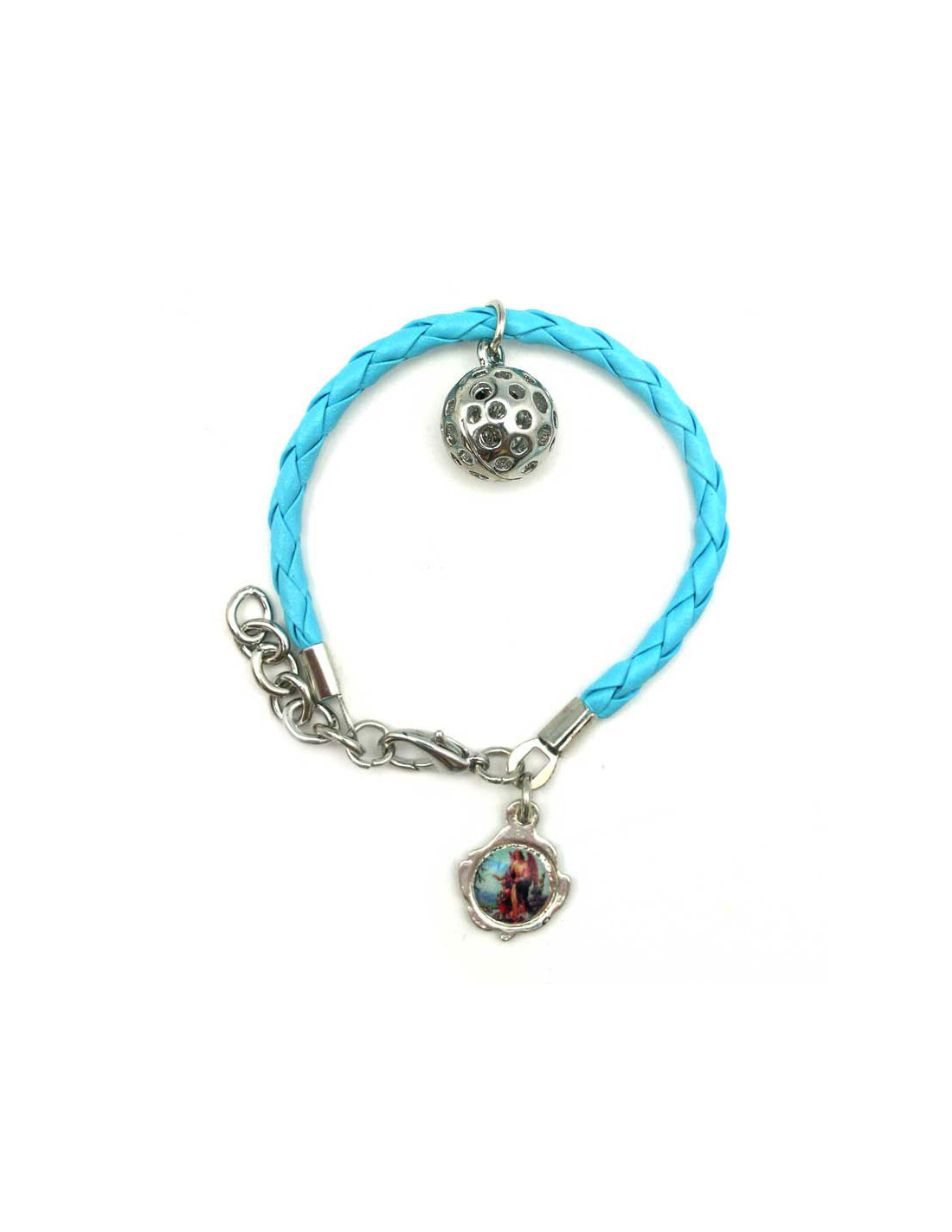 Pulsera Trenzada Infantil Azul Llamador Del Angel Con Medalla Para Foto