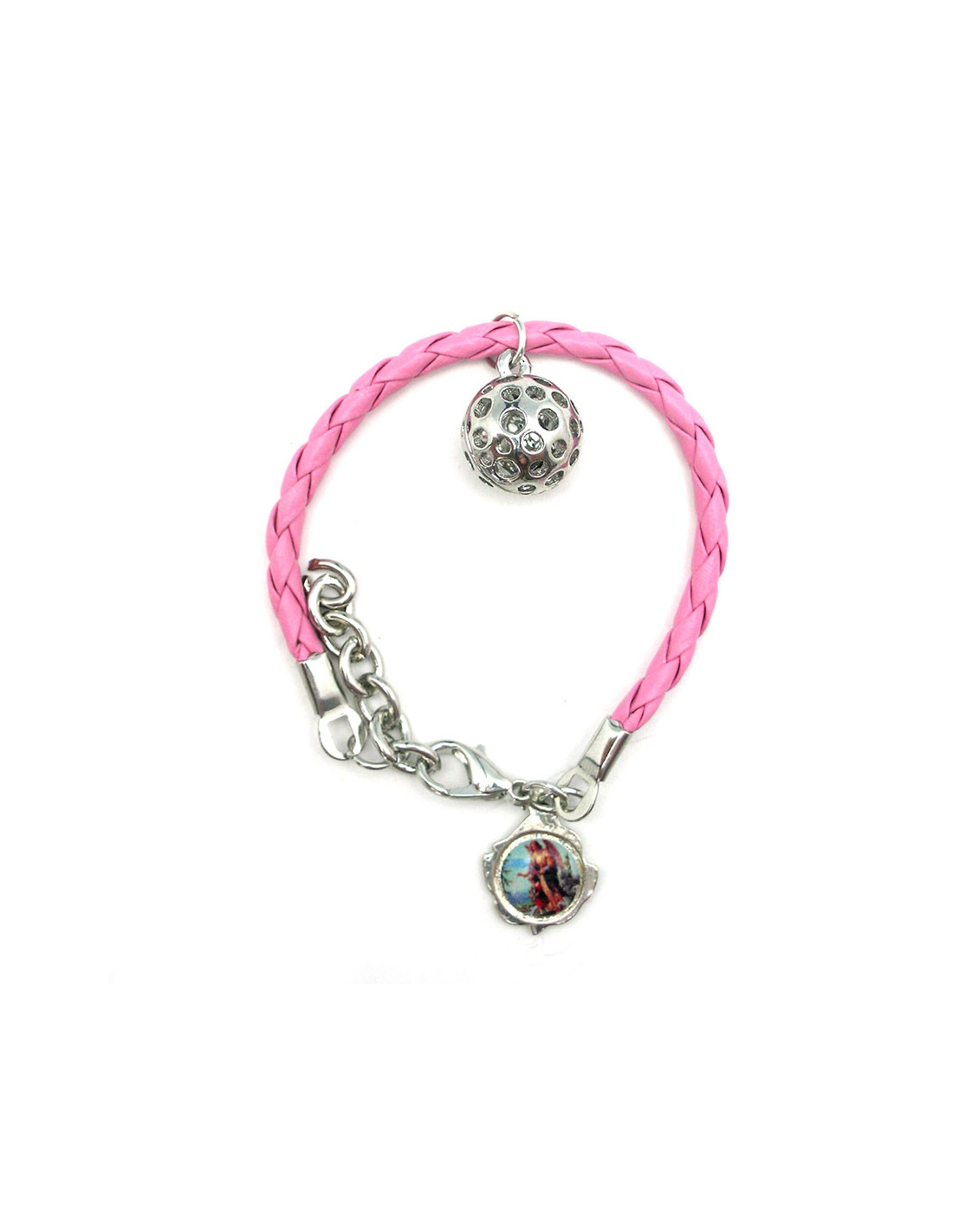 Pulsera Trenzada Infantil Rosa Llamador Del Angel Con Medalla Para Foto