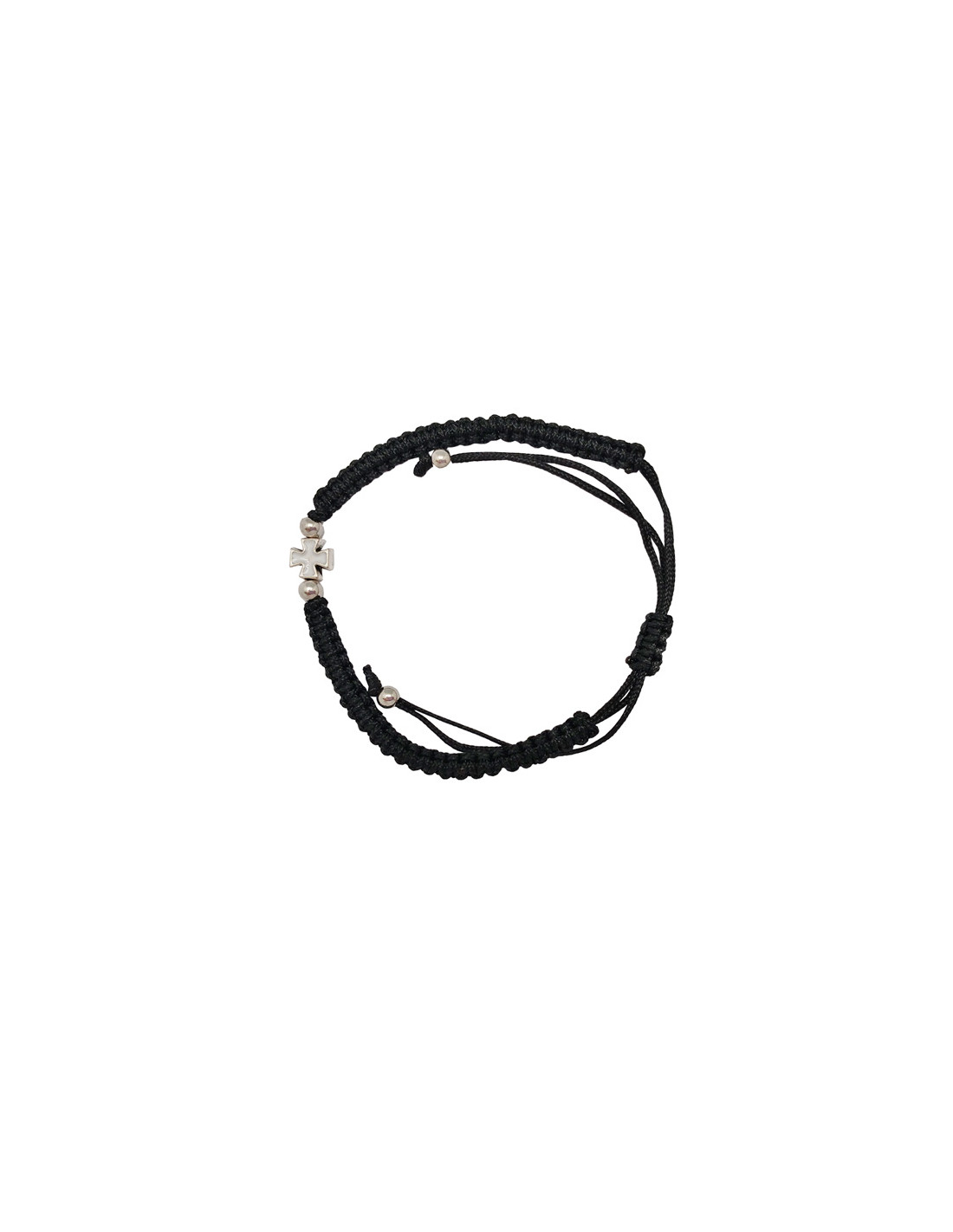 Pulsera Macrame Negra Con Cruz Cuadrada Blanca Pequeña En El Centro