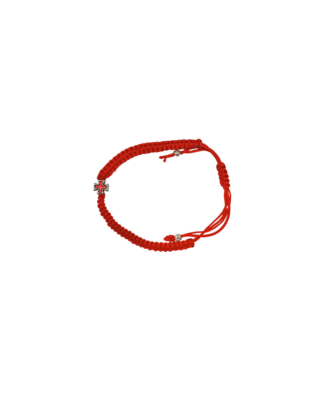 Pulsera Macrame Roja Con Cruz Cuadrada Roja Pequeña En El Centro