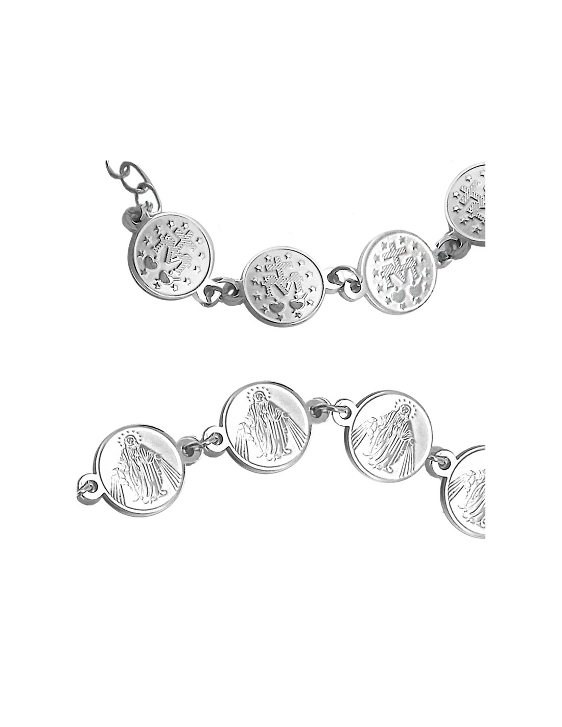 Pulsera Acero Virgen Milagrosa Medallas Redondas 10Mm