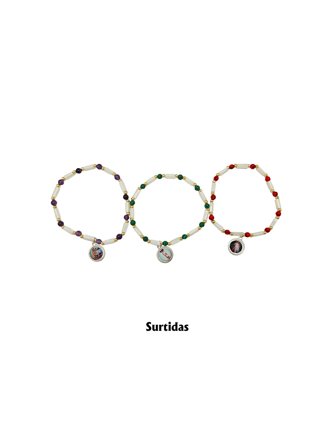 Pulsera Elastica Tubos Nacar Con Piedras 5Mm 3 Colores Surtidos