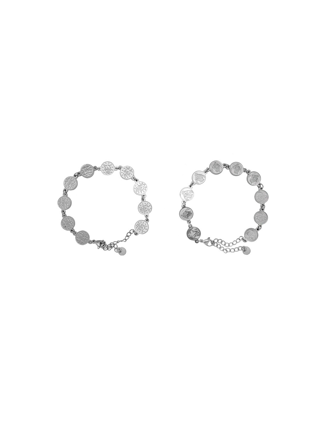 Pulsera Acero Virgen Milagrosa Medallas Redondas 10Mm