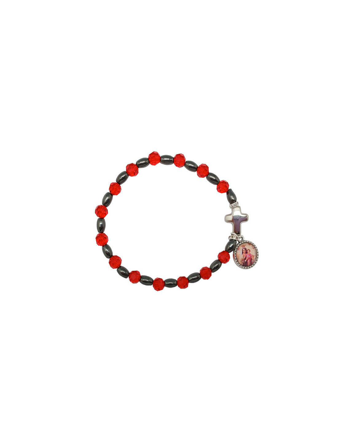Pulsera Cristal Rojo 6Mm Con Ematite Y Cruz