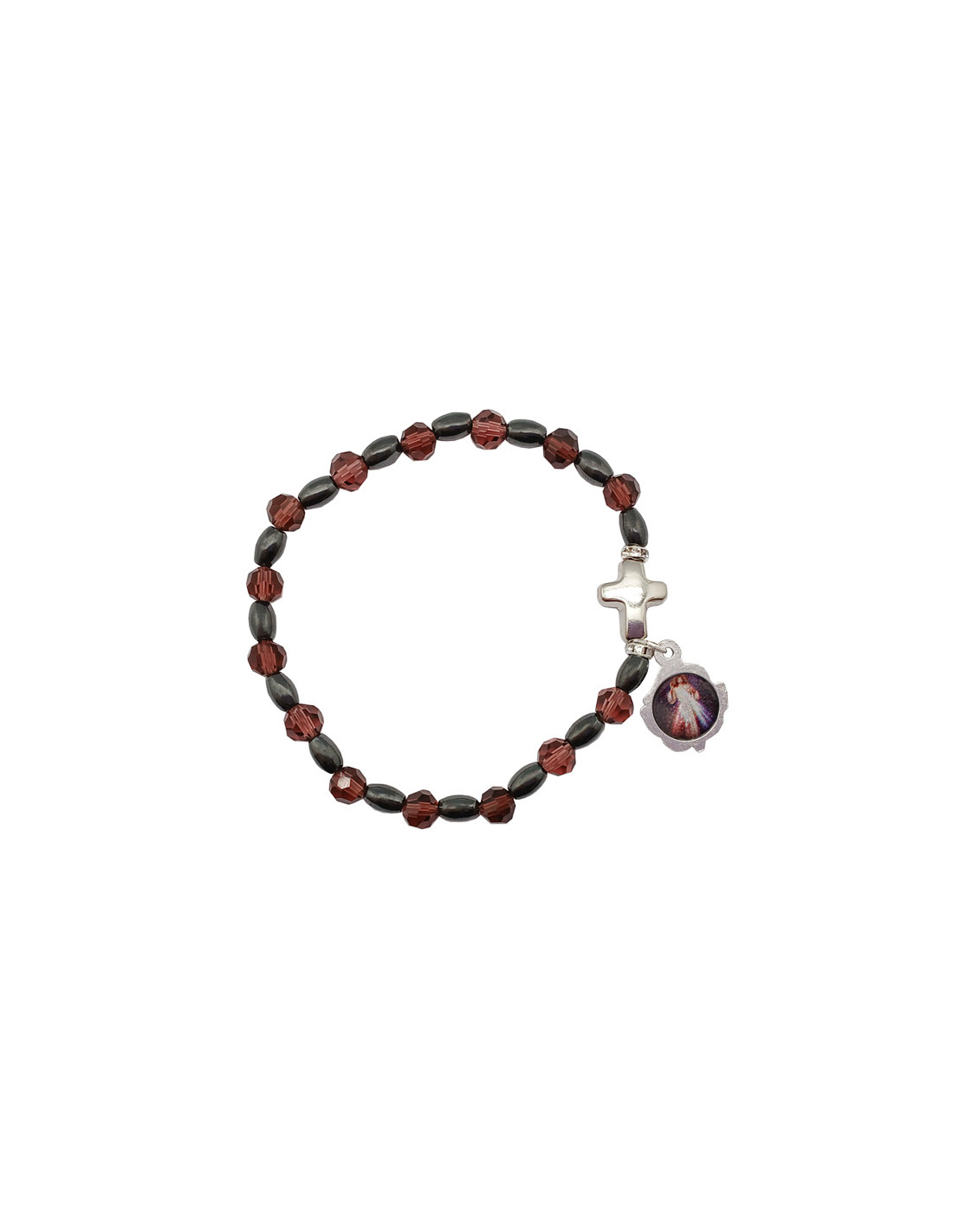 Pulsera Cristal Ojo De Tigre 6Mm Con Ematite Y Cruz