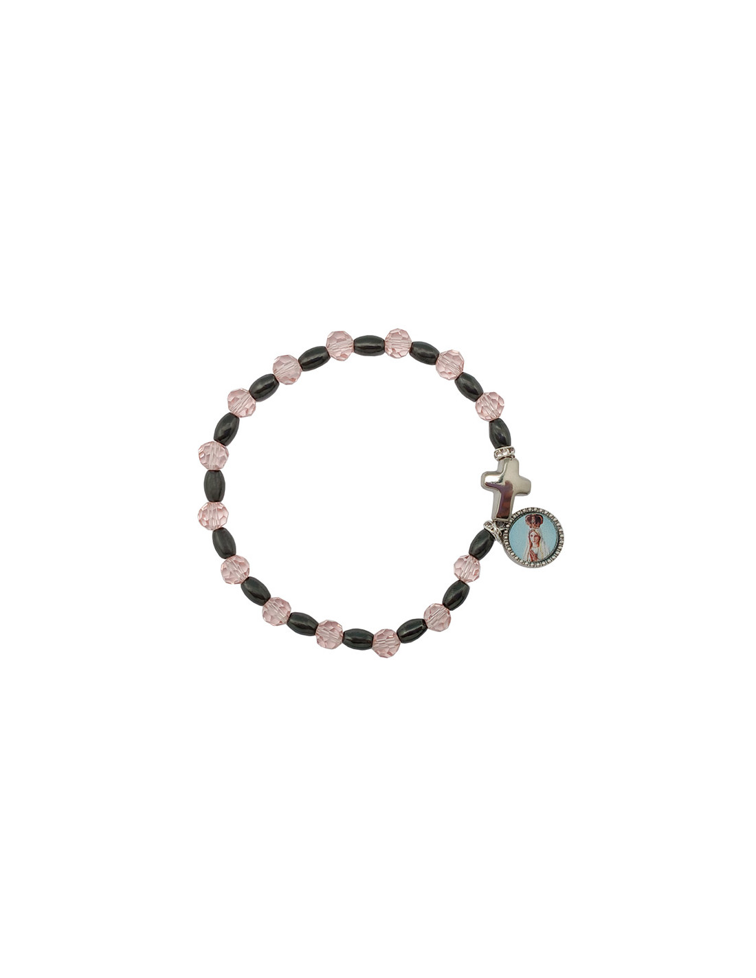 Pulsera Cristal Rosa 6Mm Con Ematite Y Cruz
