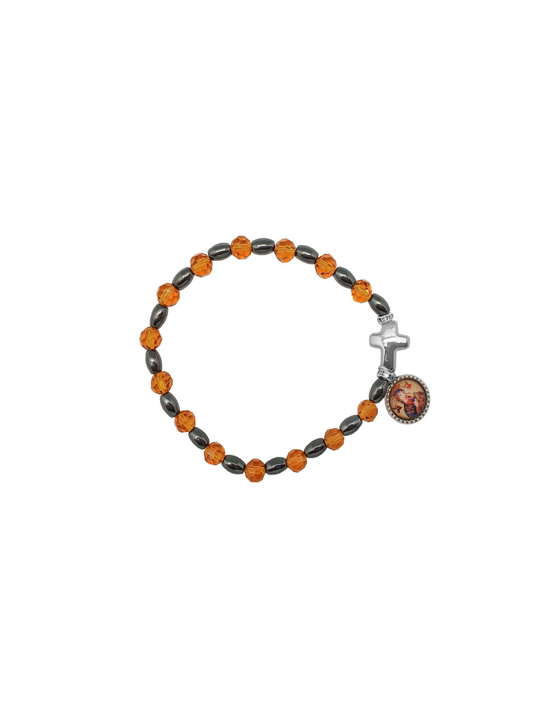 Pulsera Cristal Dorado 6Mm Con Ematite Y Cruz