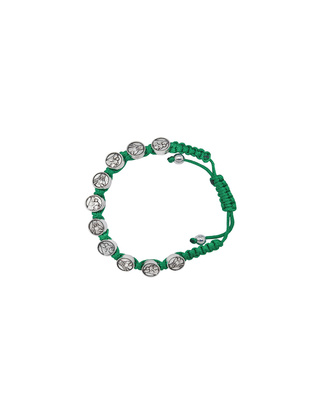 Pulsera Cuerda Escapulario Con Medallas Metal 9Mm Verde