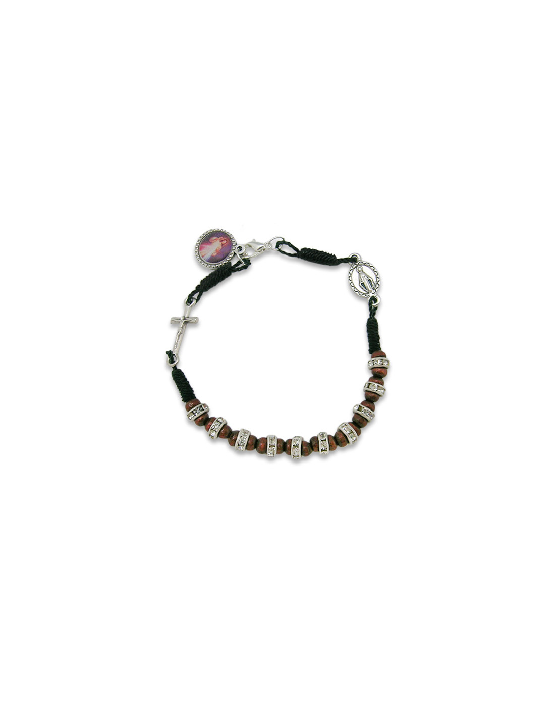 Pulsera Cordon Negro Madera Con Cristal Y Cruz