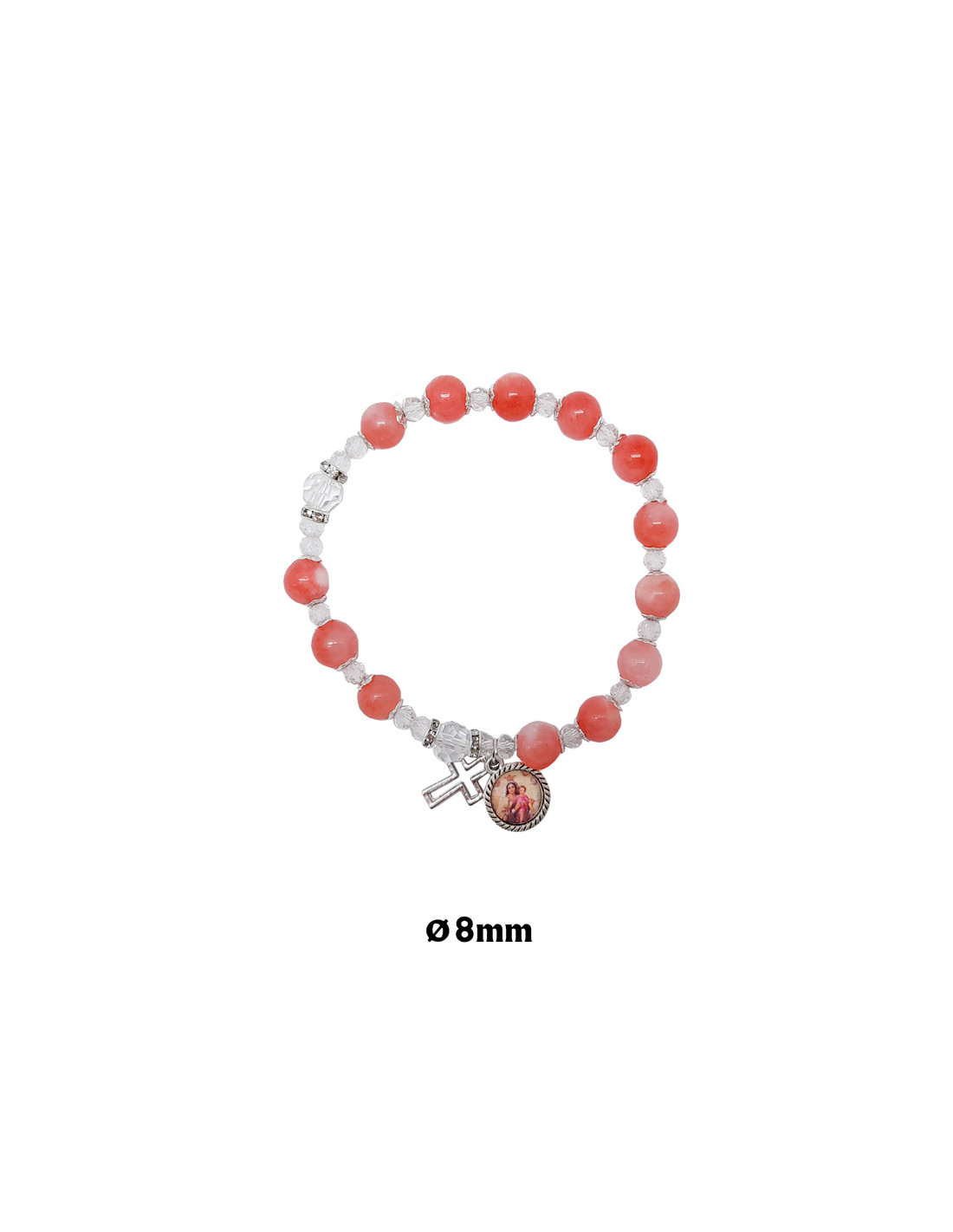 Pulsera Elastica Piedra Roja 8Mm Paters Trasparentes Tipo Rosario