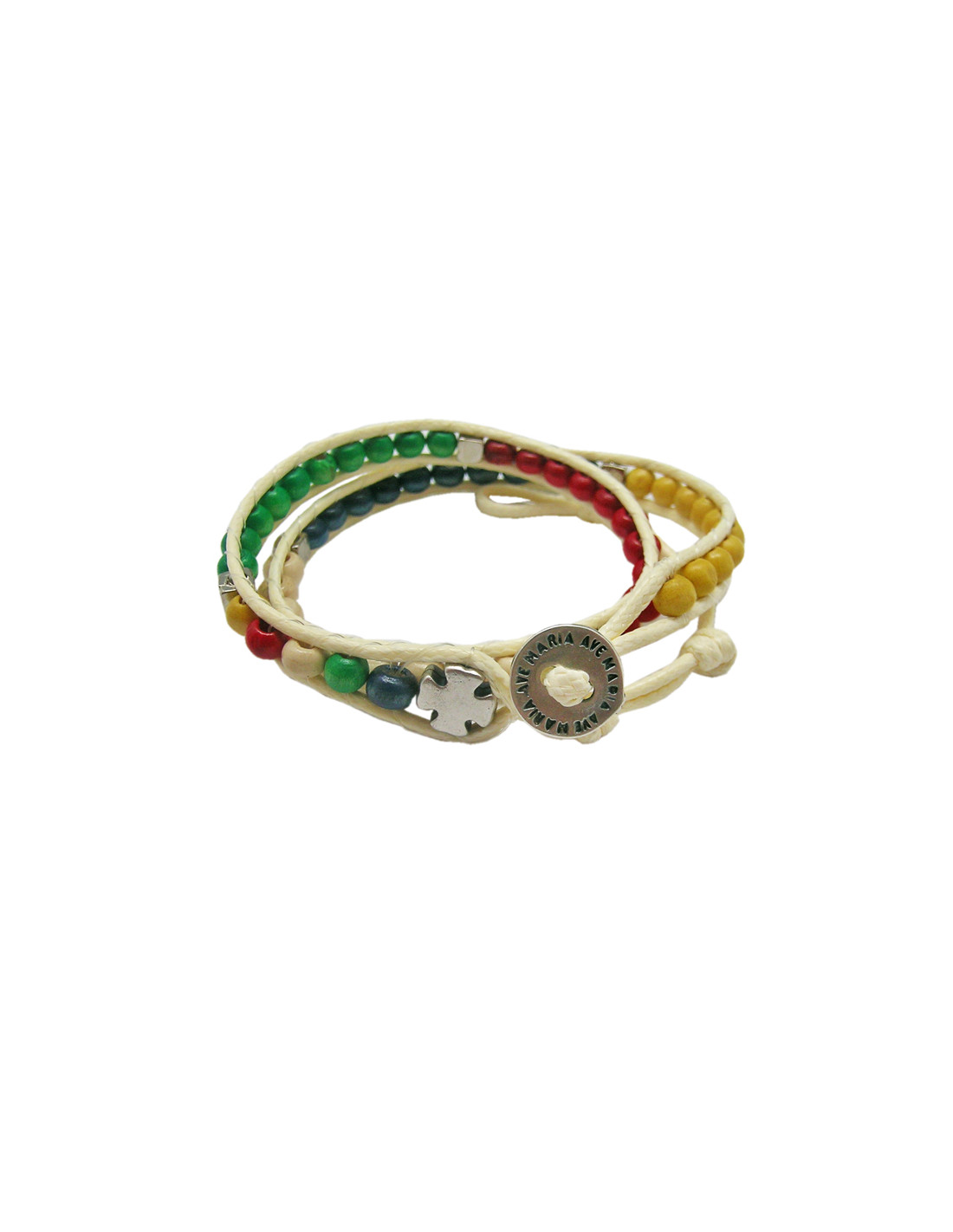 Pulsera Rosario Madera Misionera Bola Cubo 5Mm Doble Vuelta Bot n Ave Maria Y Cruz