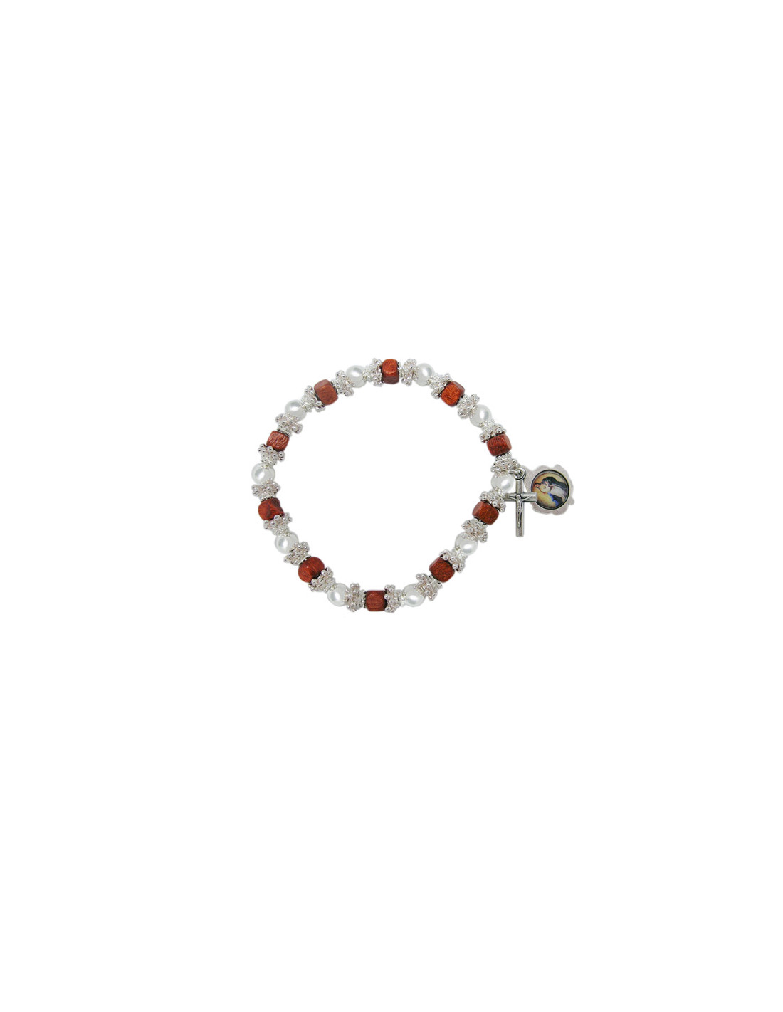 Brazalete Elastico Madera Y Metal 6Mm Con Discos Metal