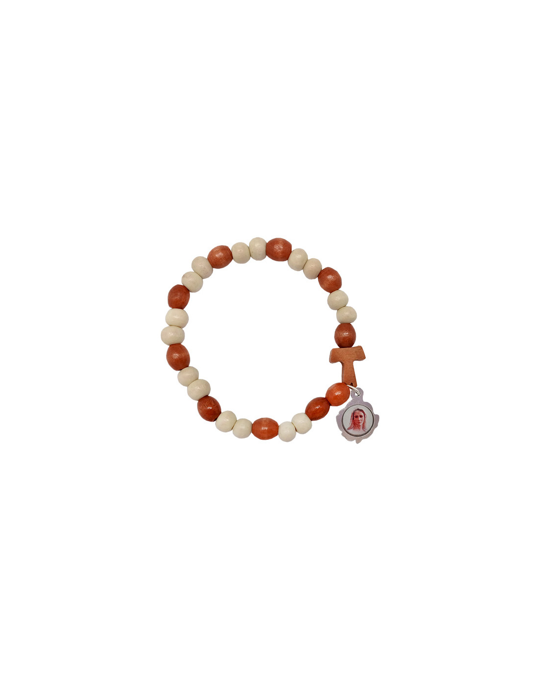 Pulsera Elastica Madera 6Mm Blanca Y Marron Y Cruz Tau