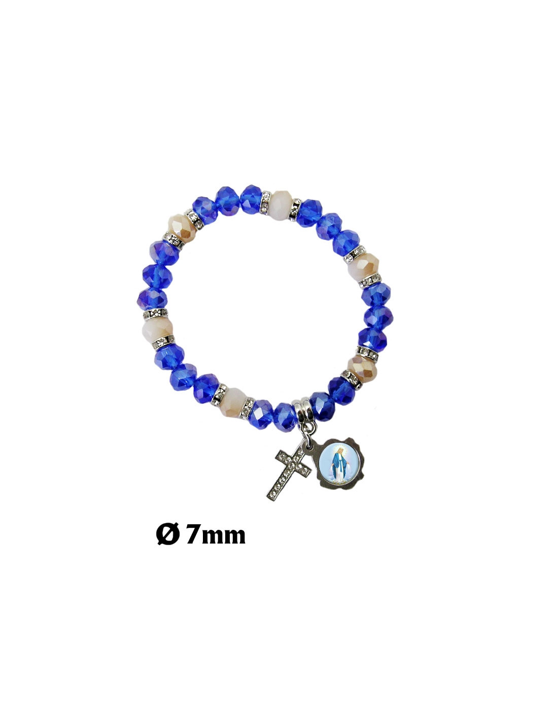 Pulsera Elastica Strass Azul Y Blanca Cuentas Hexagonales Con Cruz