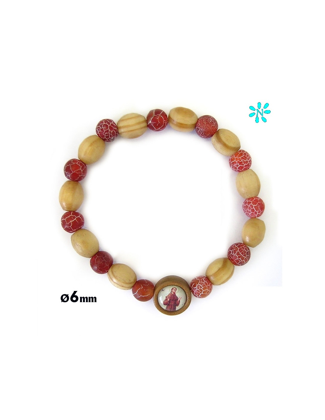 Pulsera Elastica 8Mm Piedra Roja Y Madera Personalizable