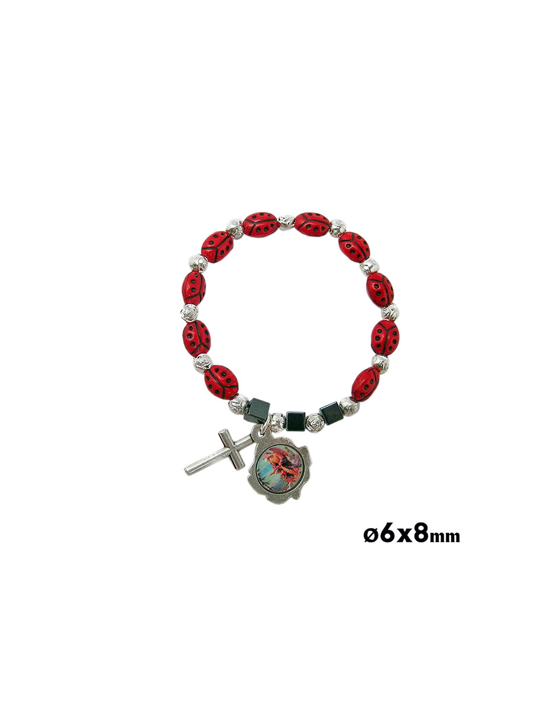 Pulsera Elastica Infantil Mariquitas Y Rosas Con Crucecita