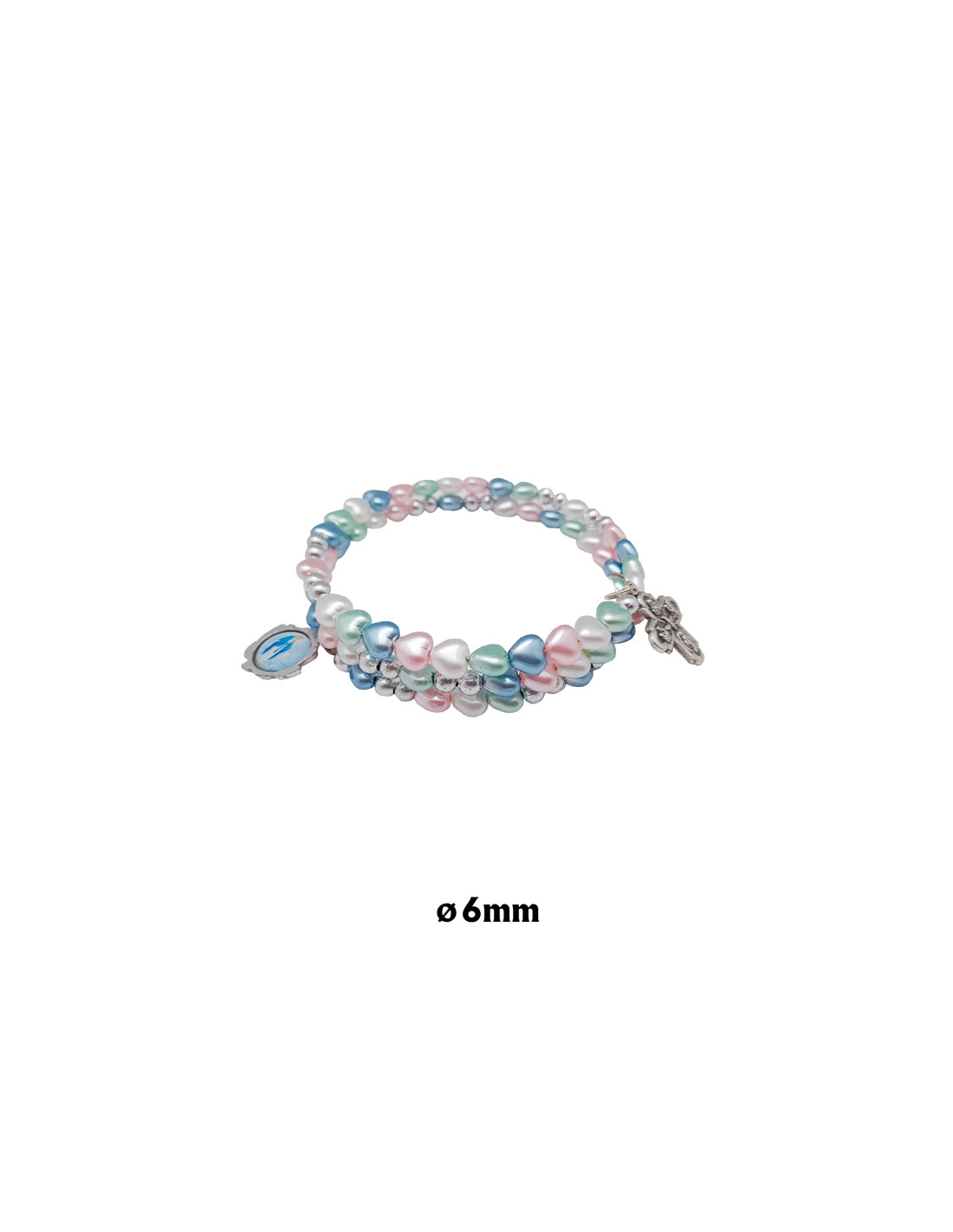Brazalete Rigido Corazones Cuentas En Tonos Pastel Con Cruz Personalizable