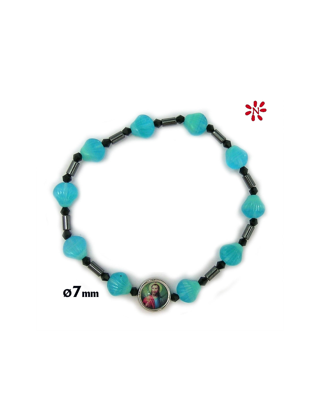 Brazalete Cristal Conchas Azules 7Mm Elastico Con Ematite
