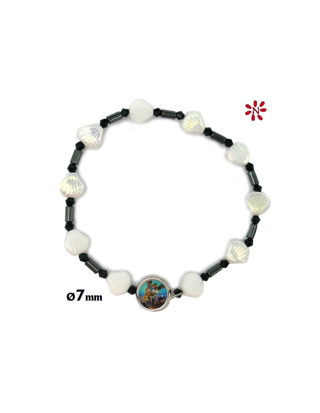 Brazalete Cristal Conchas Blancas 7Mm Elastico Con Ematite