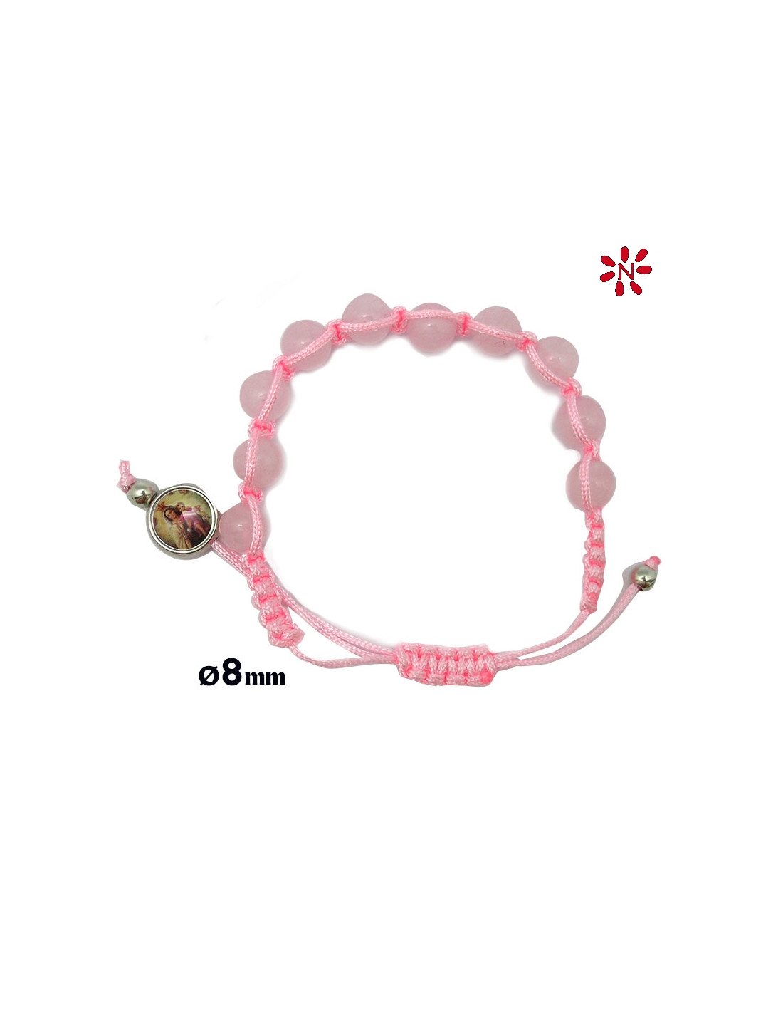 Pulsera Cuerda Y Piedra Cuarzo Rosa 8Mm