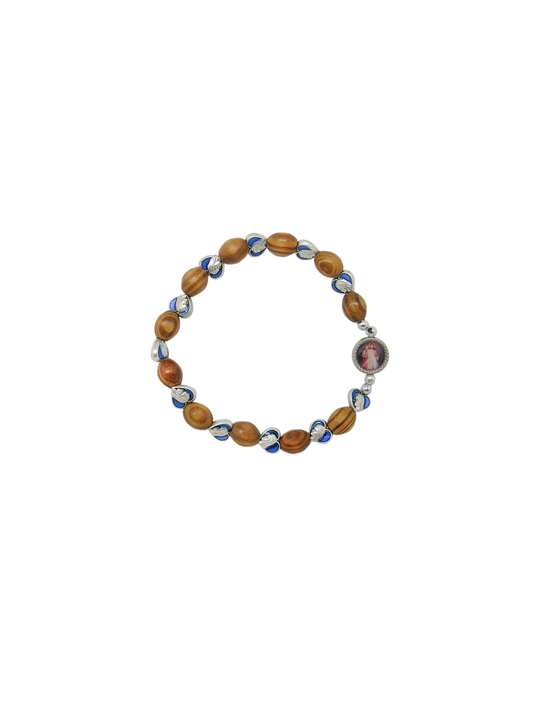 Brazalete Elastico Olivo 10X7mm Y Medallas Esmaltadas Cara De La Virgen