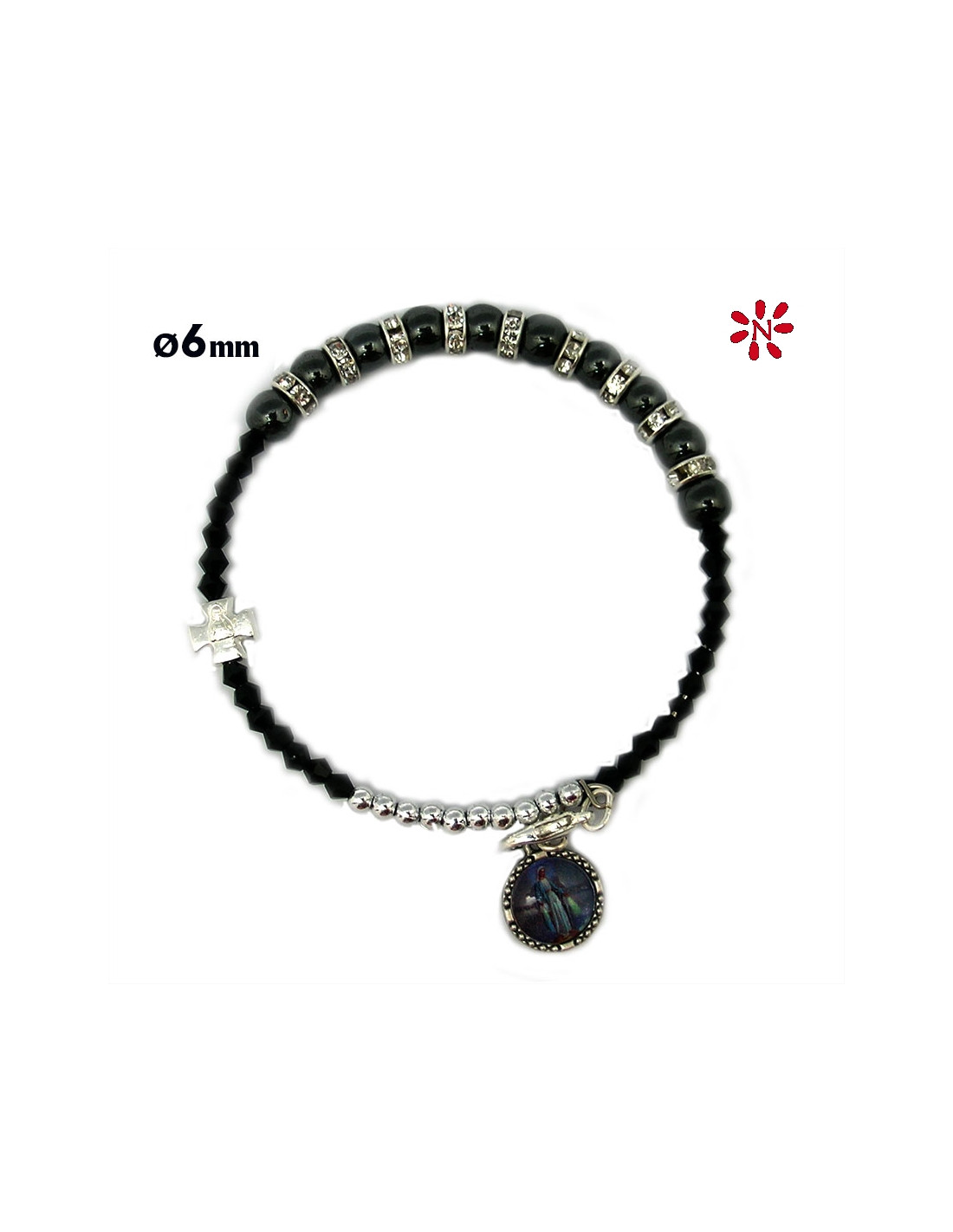 Brazalete Rigido 6Mm Disco Zirconitas Con Ematite Y Rombos Negros