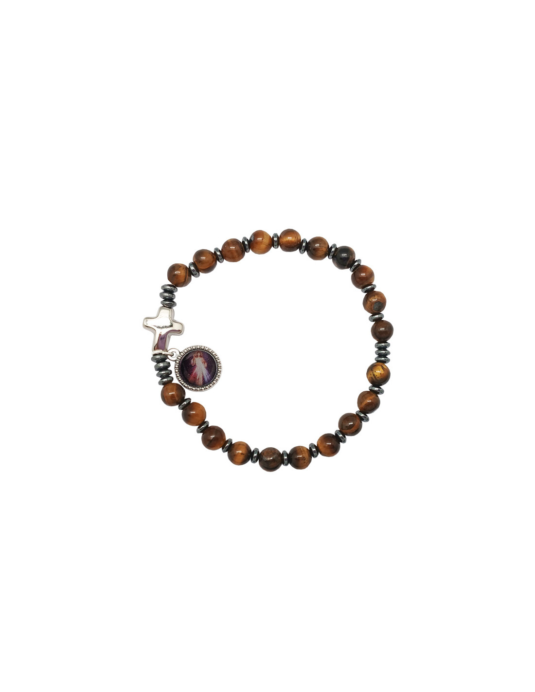 Pulsera Cristal Ojo De Tigre 6Mm Con Ematite Y Cruz