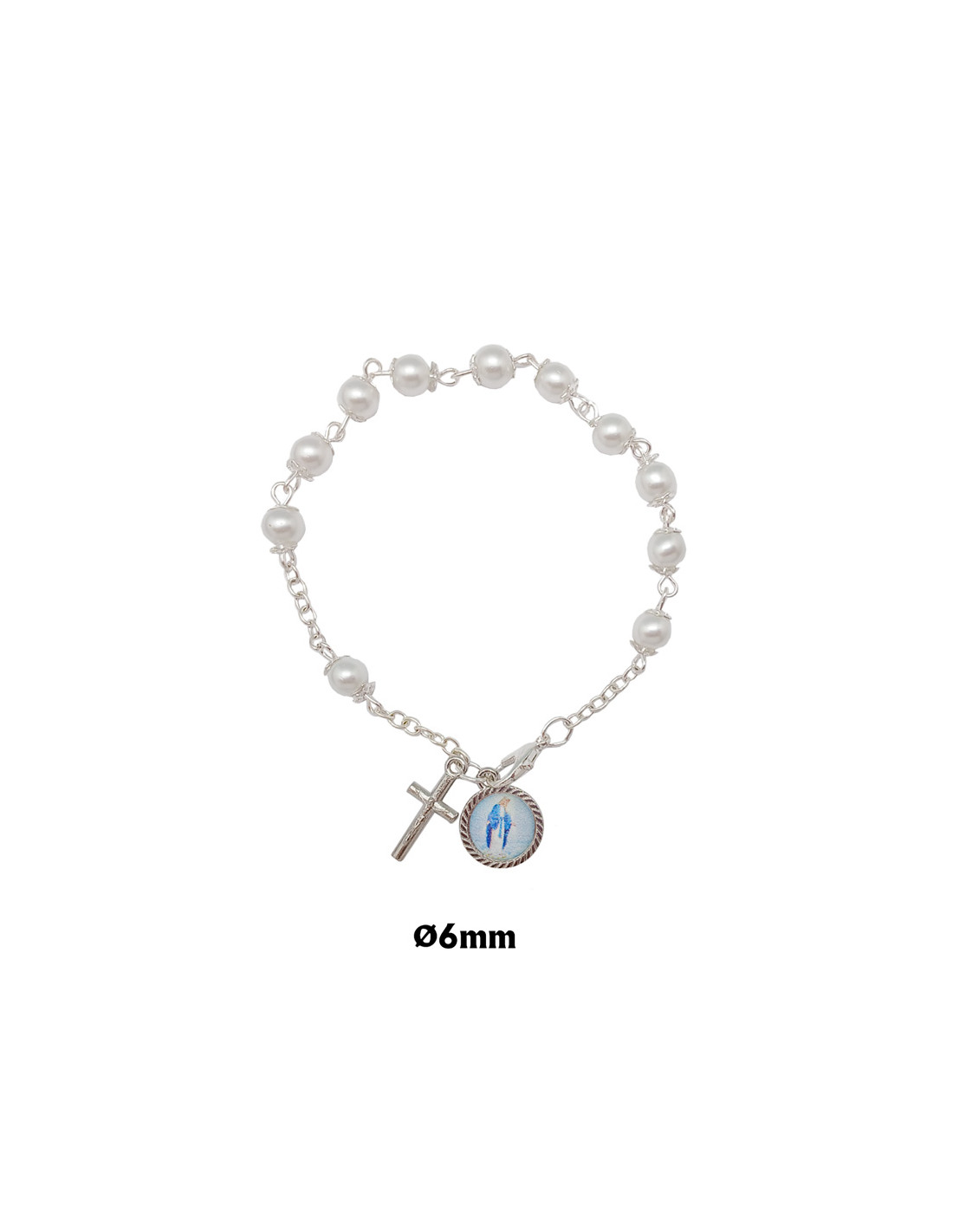 Brazalete Perla Liso 6Mm Con Copetas Cruz Y Medalla Foto