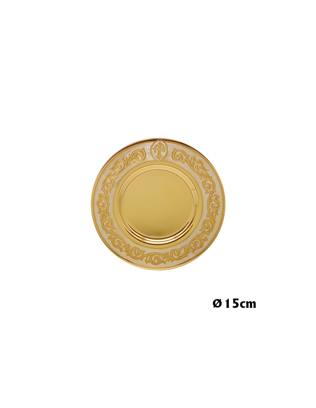 Patena Caliz Metal Dorada Grabado Superior Tipo Greca Floral A Mano 15Cm Diametro