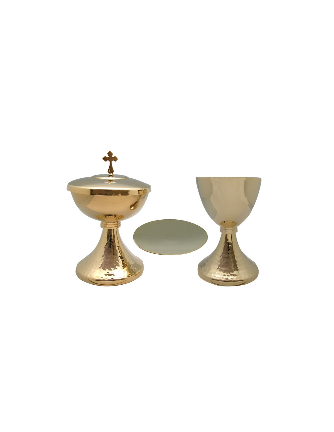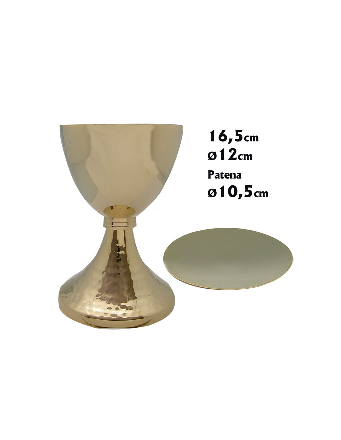 Caliz Metal Dorado Liso Nudo A Rayas Y Base Punteada Altura 16. 5Cm Con Patena