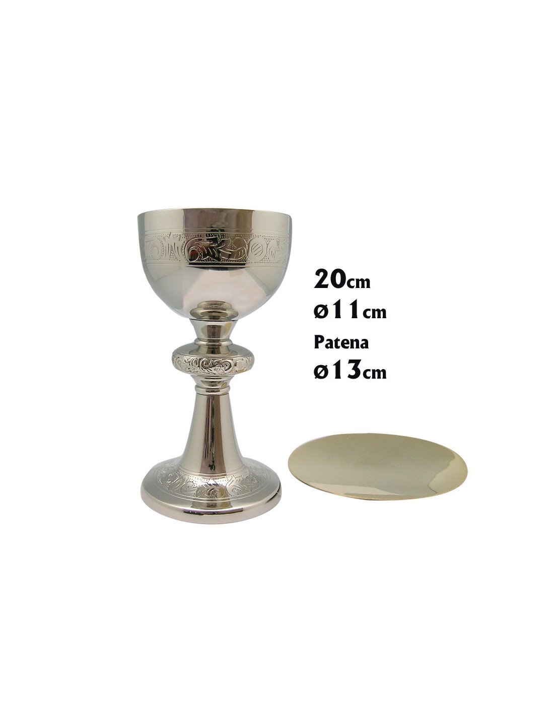 Caliz Metal Plateado Decorado Greca Copa Redonda Altura 20Cm Patena Dorada