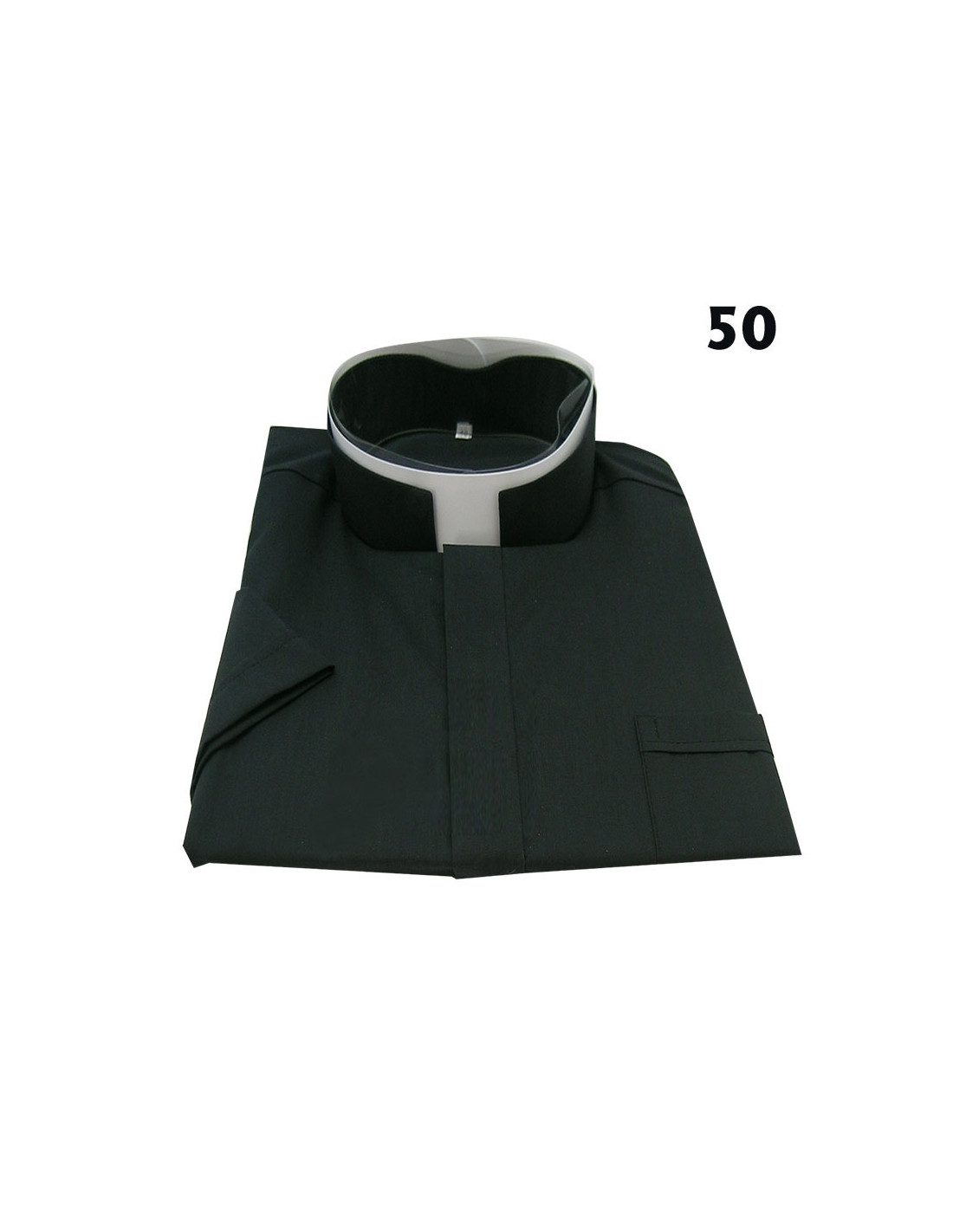 Camisa Sacerdote Negra Cuello Romano Mc Talla 50