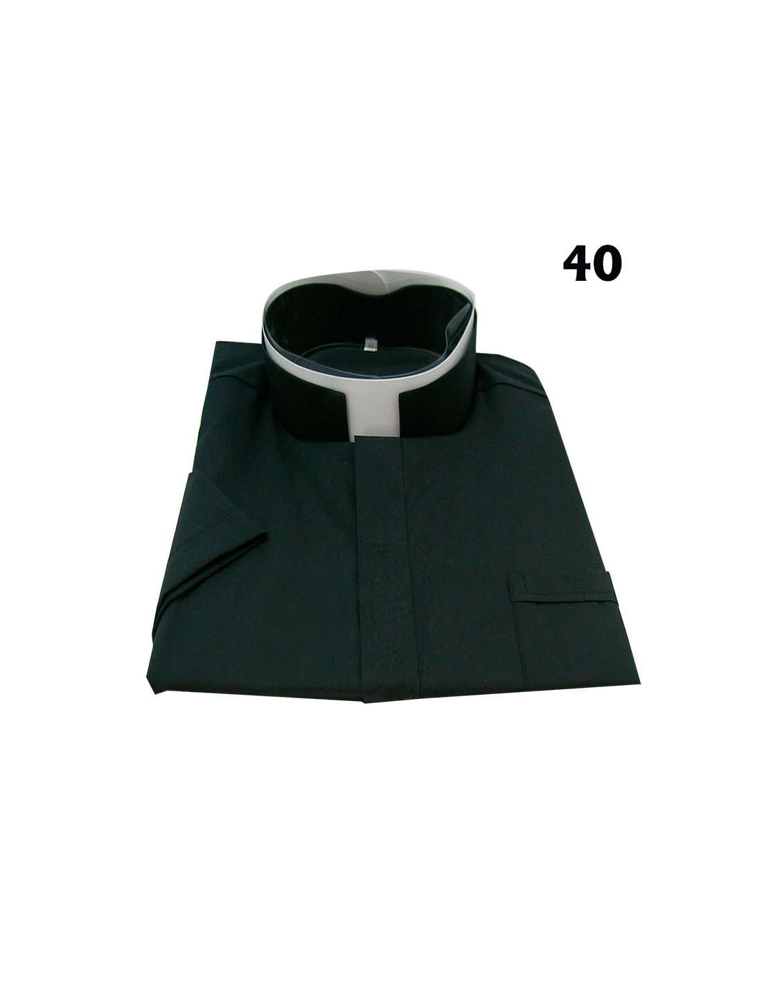Camisa Sacerdote Negra Cuello Romano Mc Talla 40